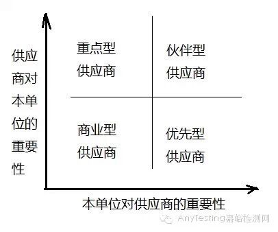 (1)伙伴型供應商 如果本公司認為供應商有很強的產品開發(fā)能力,采購業(yè)務對本公司很重要,而且供應商也認為本公司的采購業(yè)務對于他們來說非常重要,那么這樣的供應商就是“伙伴型供應商”。 (2)優(yōu)先型供應商 如果供應商認為本公司的采購業(yè)務對于他們來說非常重要,但該項業(yè)務對于本公司卻并不是十分重要,這樣的供應商無疑有利于本單位,是本單位的“優(yōu)先型供應商”。 (3)重點型供應商 如果供應商認為本公司的采購業(yè)務對于他們來說無關緊要,但該采購業(yè)務對于本公司卻是十分重要的,這樣的供應商就是需要注意改進的“重點型供應商”。 (4)商業(yè)型供應商 對于那些供應商和本公司來說均不是很重要的采購業(yè)務,相應的供應商可以很方便地選擇和更換,那么這些采購業(yè)務相對應的供應商就是普通的“商業(yè)型供應商”。